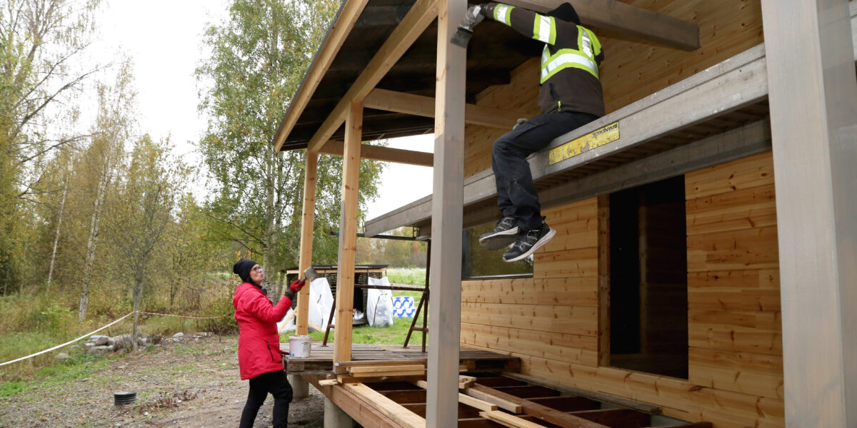 Talkoolaiset rakentavat saunaa vaihe kerrallaan valmiiksi