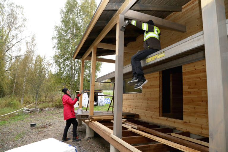 Talkoolaiset rakentavat saunaa vaihe kerrallaan valmiiksi
