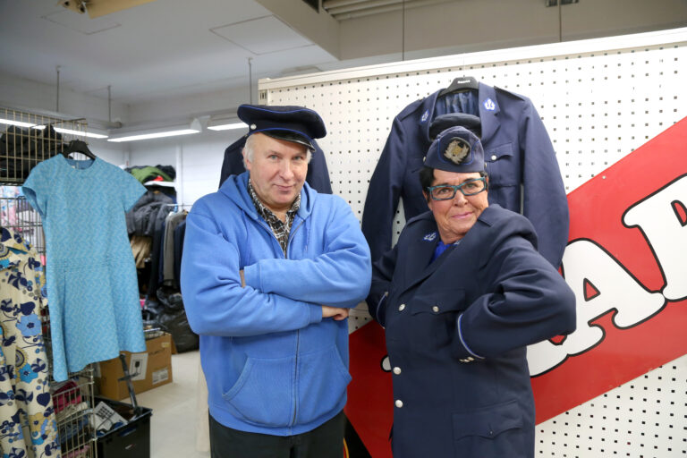 Ristiinan nuorisoseura vuokraa nyt laajasta puvustostaan helmiä myös juhlijoille. Missähän peruukit ovat, pohtii Päivi Orava ja tuumaa, että …